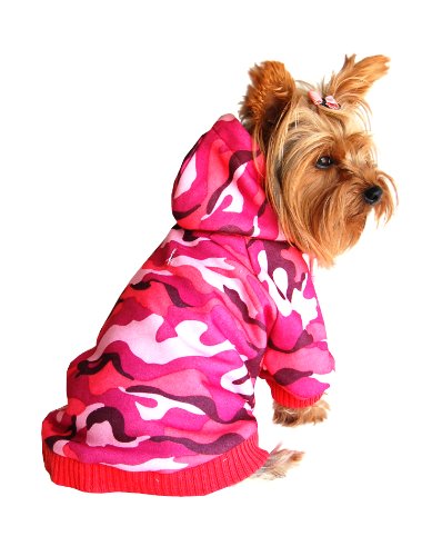 Sweater is made of warm cotton fabric with a velcro closure in front and adjustable drawstrings for the hoodie. Comes in two camouflage print colors - Army Green and Pink.